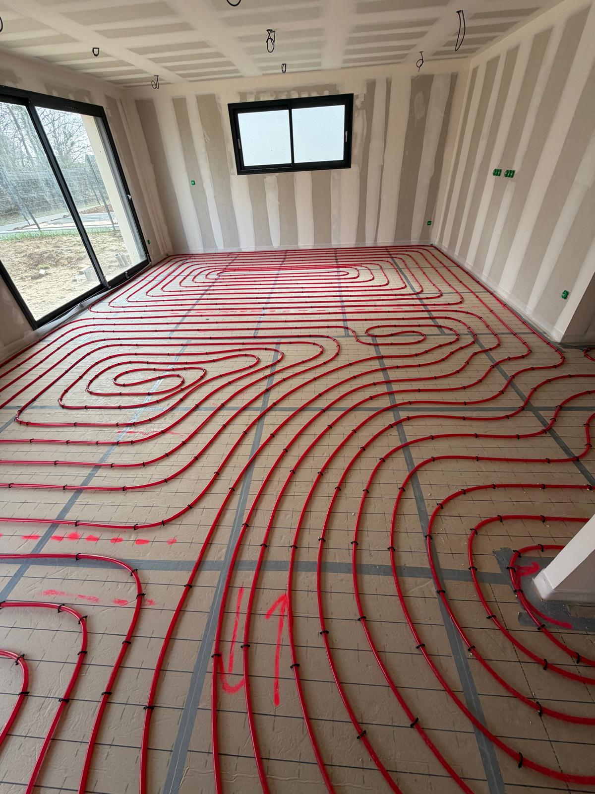 Le plancher chauffant offre une diffusion homogène de la chaleur. Nous réalisons la mise en place complète du réseau pour garantir une installation efficace et durable.